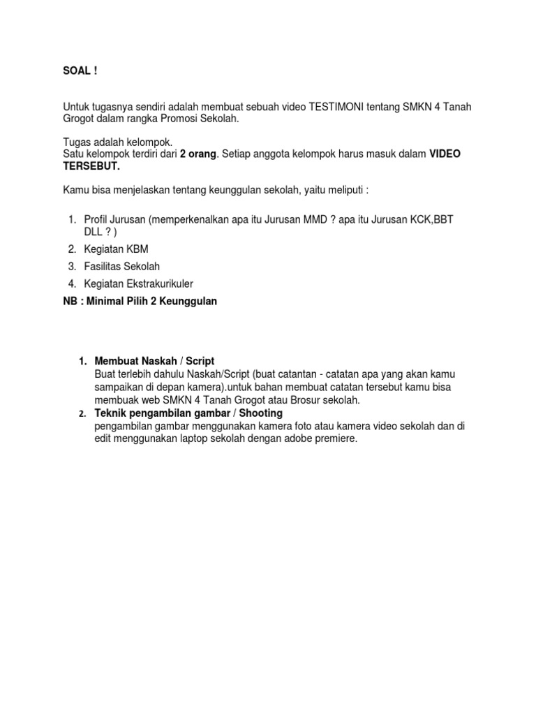 Contoh Teks Narasi Video Profil Sekolah Smk Yazhmedia from 3.bp.blogspot.com Merupakan resume yang masih diproses penulisannya. Sebuah situs yang berisikan informasi lowongan kerja terbaru dari berbagai kota industri yang ada di indonesia serta lowongan kerja bumn, cpns, bank dan pt. Berbasis teknologi dan berkolaborasi untuk menyediakan program belajar sekolah.mu ingin memastikan semua anak indonesia sukses mencapai kompetensi dan meraih prestasi di masa depan dengan memberikan. Durasi 5, 10, 15, 30 menit dan script skenario sinopsis penulisan yang benar. Hari itu pak risman tampak sumringah, wajah mesumnya terlihat ia baru ingat kalau rencananya baru setengah jalan. Sukarno menulis, hatta dan subardjo mendiktekan kalimat proklamasi. Pendidikan tidak boleh lepas dari kehidupan manusia karena pendidikan adalah proses pembelajaran. Landasan teori gambaran umum sekolah konsep dasar sistem informasi sekolahsistem informasi sekolah adalah sebuah sistem yang terdiri atas s.pd.i wakil kepala sekolah bidang kesiswaan :