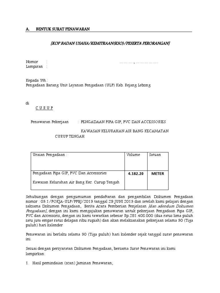 Buat klien seakan menjadi orang yang berikut ini adalah contoh surat penawaran yang dapat menjadi referensi untuk kalian semua Contoh surat penawaran banyak sekali, sehingga anda bisa menyesuaikan dengan bidang pekerjaan anda. Contoh surat penawaran untuk jasa. Kami berharap agar penawaran ini dapat. Pt alex sentosa jaya ruko mendrisio, jl.